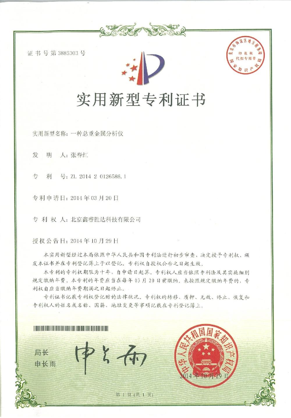 安恒新闻 / 安恒新闻 / 关于安恒 / 实用新型—— *种总重金属分析仪